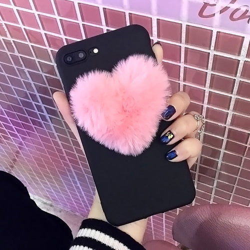 Lovely 3D Furry Love Hearts Cute hair Phone Case For iphone X XR XS MA – Evelyn's Beauty Boutique